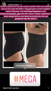 „Beim Autofahren z.B. über Pflastersteine gibt der Slip dem Bauch sehr viel Halt, der Bauch schmerzt dadurch sehr viel weniger“